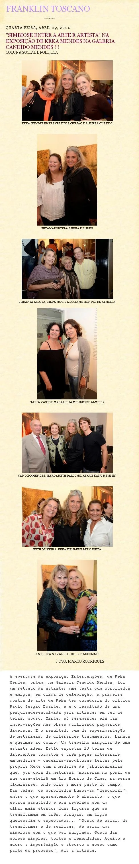 It is difficult to categorize Maria Henriqueta Junqueira Pedras Mendes de Almeida, a.k.a. – because to simplify is never overused – Keka. Currently she is “being” a visual artist and will present in her first exposition, “Interventions”, ten leather canvases and three chairs made out of Jabuticaba wood, next week, at Candido Mendes Gallery, in Ipanema. It is also difficult to know what she has not yet done. It seems like she has a profession for each of her surnames. In fact, if it was ever like that, she would need at least five more names.